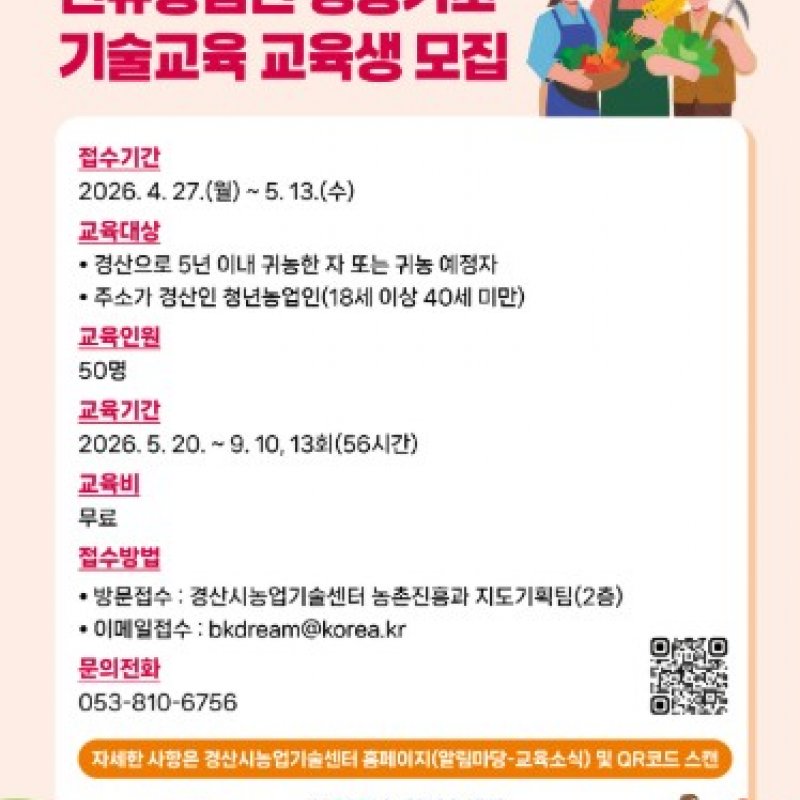 경산시, 2026년 신규농업인 영농기초 기술교육 교육생 모집