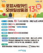 포항시, 추석 맞아 260억 규모 카드형·모바일 포항사랑상품권 13% 할인 판매