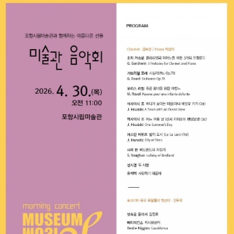 포항시립미술관 제107회 음악회‘MUSEUM·MUSIC’개최