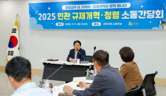 성주군은 지난 11일, 관내 6개 경제 관련 협의회 회장단과 “2025 민-관 규제개혁·청렴 소통간담회”를 개최하여 규제개혁을 위한 현장의 목소리를 들었다.