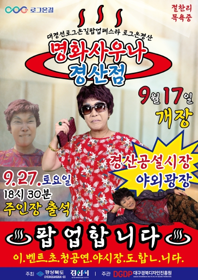 경상북도와 경산시는 9월 17일부터 10월 3일까지, 경산공설시장에서`2025 대경선 로그온길 팝업페스타 ‘명화사우나’` 팝업스토어를 운영한다고 밝혔다.