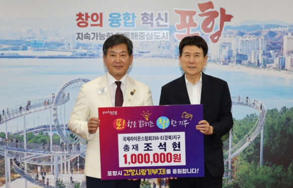 이강덕 포항시장은 “조석현 총재님의 ‘오로지 봉사’ 정신이 담긴 기부는 지역사회에 큰 귀감이 될 것”이라며 “기탁해 주신 성금은 주민 복리와 지역 발전을 위해 소중히 활용하겠다”고 전했다.