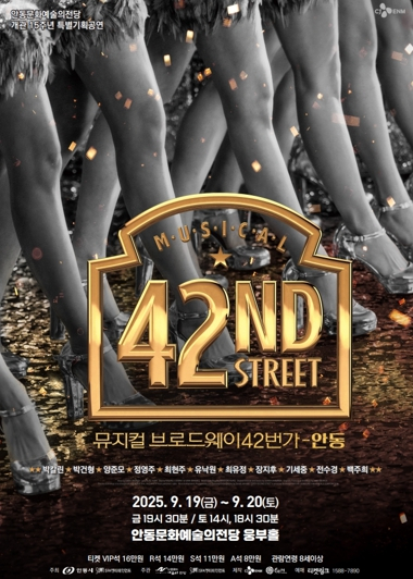 안동문화예술의전당은 개관 15주년을 맞아 특별기획 공연으로 뮤지컬 `브로드웨이 42번가`를 선보인다. 공연은 오는 9월 19일부터 20일까찌 양일간 웅부홀에서 총 3회 진행된다.