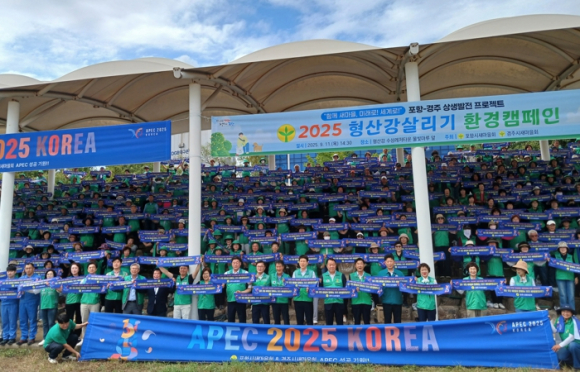 경주시새마을회와 포항시새마을회 지난 11일 포항시 형산강 물빛마루 특설무대 앞에서 2025 새마을 환경 살리기 행사를 개최했다.