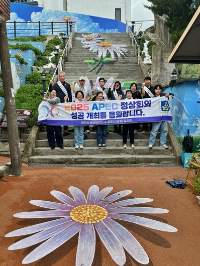 | ↑↑ 지난 11일 경주시 감포 해국길에서 열린 ‘SNS 알리미 팸투어 및 APEC 클린데이’ 참가자들이 2025 APEC 정상회의 성공 개최를 응원하며 기념촬영을 하고 있다. |