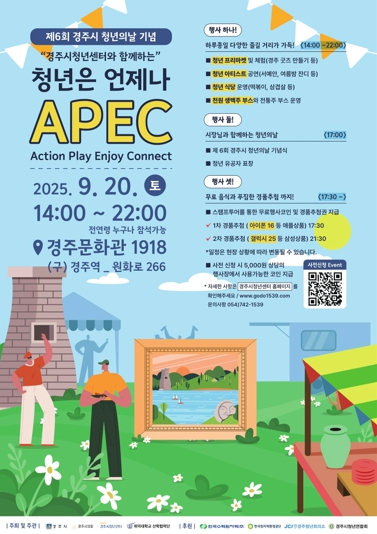 올해 행사는 ‘청년은 언제나 A.P.E.C(Action.Play.Enjoy.Connect)’라는 주제로 열리며, 경주시가 주최하고 경주시 청년센터 ‘청년고도’(위덕대 산학협력단)가 주관한다.