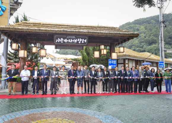 문경시는 지난 12일 가은아자개장터 주차장에서 신현국 문경시장과 이정걸 문경시의회 의장, 도의원, 시의원, 더본코리아 백종원 대표, 기관단체장, 가은읍 지역 주민 등 1,000여 명이 참석한 가운데 ‘가은아자개장터 외식창업 테마파크’개장식을 열었다.