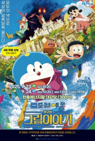 한국수력원자력(주) 한울원자력본부는 지역주민을 대상으로 9월 23일, 24일 양일간 한울에너지팜 대강당에서 극장판 애니메이션`도라에몽: 진구의 그림이야기`를 무료 상영한다.