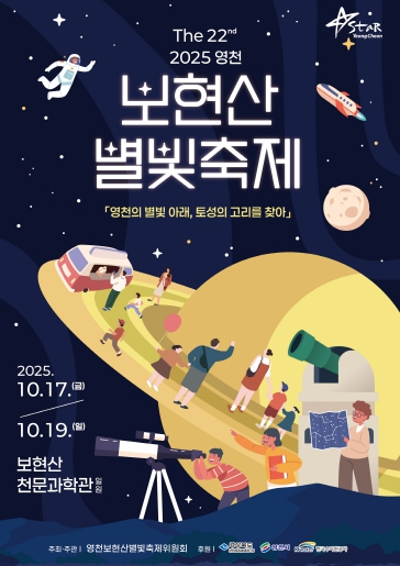제22회 영천보현산별빛축제는 ‘영천의 별빛 아래, 토성의 고리를 찾아’를 주제로 보현산천문과학관 일원에서 열린다. ‘별의 도시’ 영천은 청정 자연이 선사하는 밤하늘과 국내 최대 광학 망원경을 갖춘 보현산천문대 등 풍부한 천문과학 인프라를 자랑한다. 축제는 단순한 볼거리를 넘어 다양한 과학 체험을 통해 우주의 원리를 배울 수 있는 유익한 내용으로 호평받으며, 7년 연속 경상북도 우수축제로 선정됐다.