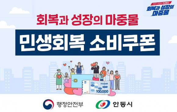 안동시는 9월 22일부터 10월 31일까지, 정부가 소비 활성화와 소상공인․자영업자의 매출 확대를 통한 민생경제 회복을 목표로 추진하는 ‘민생회복 소비쿠폰’의 2차 신청을 접수한다.