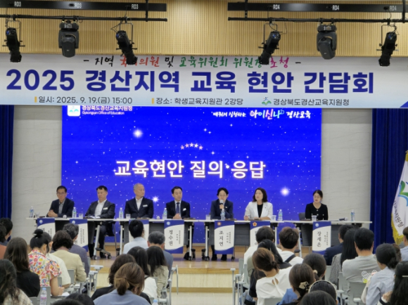 경상북도경산교육지원청은 9월 19일 15:00, 학생교육지원관 2강당에서 조지연 국회의원과 박채아 교육위원회 위원장을 초청하여 경산지역 교육현안을 논의하는 간담회를 개최했다.