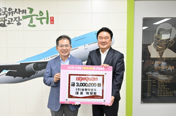 | ↑↑ 송원이엔지 박재현 대표, 군위군 고향사랑기부 3백만원 기탁 |