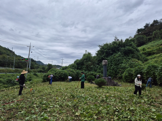 군위군 기획감사실과 삼국유사면 직원들이 추석을 앞둔 19일 삼국유사면 화수리에 위치한 독립운동가 허석 의사 기념추적비 주변에서 예초작업 등 환경정화 봉사활동을 실시했다. 이번 봉사활동은 기념비 주변을 정비함으로써 방문객들이 보다 쾌적하고 의미있는 공간에서 허석 의사의 숭고한 뜻을 되새길 수 있도록 하기 위해 마련됐다.