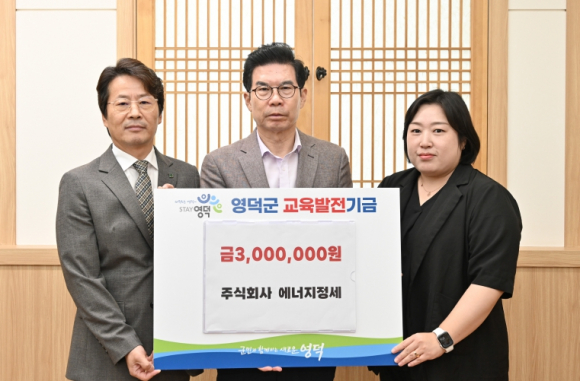 경북 경주시에 있는 친환경 폐기물 처리 기업인 ㈜에너지정세의 봉민석 대표가 지난 22일 김광열 영덕군수를 찾아 교육발전기금 300만 원을 기탁했다.