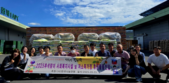 (사)한국나눔연맹은 9월 23일 추석맞이 관내 사회복지시설 및 저소득가정에 쌀 1,000포, 라면 1,000박스, 과자 1,000박스(7천3백만원상당)를 전달했다.