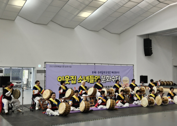 2025년 문화예술진흥 공모사업에 선정된, 지역 대표 공연단체 노인회관 열정장구반의 ‘이웃집 소녀들의 문화수다’가 9월 23일 화요일 성황리에 개최됐다.