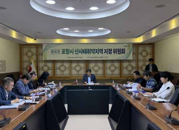 | ↑↑ 포항시가 25일 시청 중회의실에서 산사태취약지역 지정심의 위원회를 개최했다. |