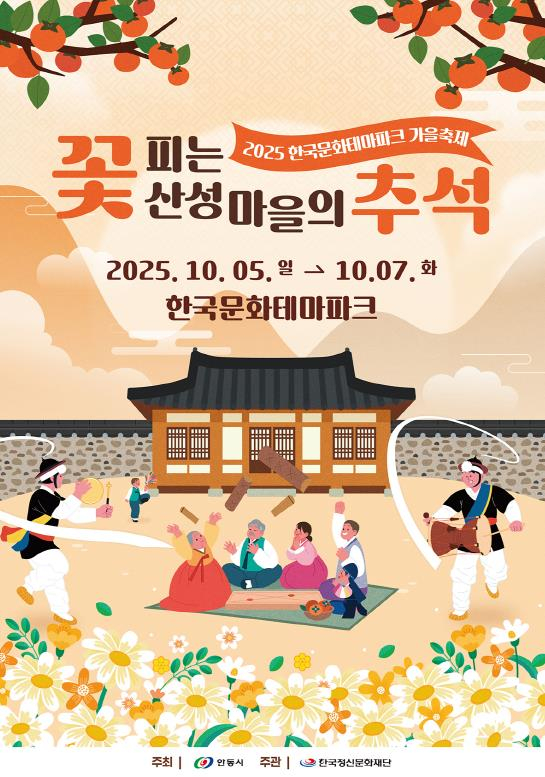 안동시와 한국정신문화재단은 한국문화테마파크에서 10월 5일부터 7일까지 3일간 ‘조선의 가을, 꽃피는 산성마을의 추석’ 행사를 개최한다고 밝혔다.