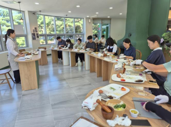 | ↑↑ 임신부부 10쌍을 대상으로 치유음식 체험이 진행되고 있다. |
