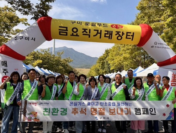 구미시는 민족 최대 명절 추석을 맞아 지난 26일 금요직거래장터(금오산대주차장 제6주차장)에서 자연보호구미시협의회 회원 20여 명과 함께 ‘친환경 추석 명절 보내기 캠페인’을 전개했다.