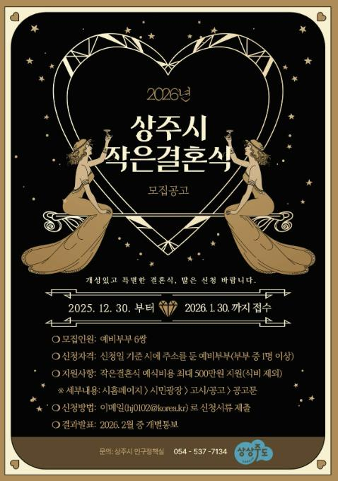 | ↑↑ 2026년 상주시 작은결혼식 지원사업 신청자 모집 |