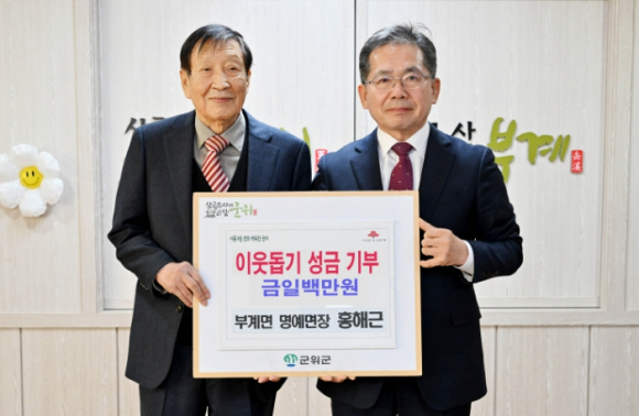 한편, 홍해근 명예면장은 부계면 남산리 출신으로 2023년부터 매년 어려운 이웃들을 위해 성금을 꾸준히 기부하여 지역 사회 기부 문화 확산에 귀감이 되고 있다.