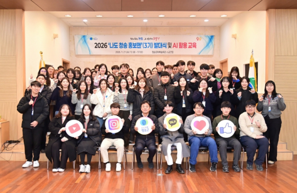 청송군은 직원들이 직접 SNS 홍보에 참여하는 2026년 ‘나도 청송 홍보맨’ 발대식 및 AI 활용 교육을 21일 청송문화예술회관 소공연장에서 개최했다.