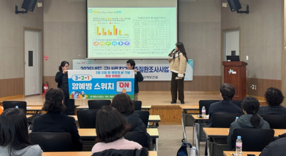 | ↑↑ 지난 13일 읍면동 담당자 교육에서 암 예방 홍보 캠페인이 진행됐다. |