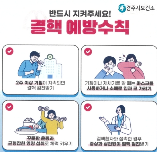 | ↑↑ 경주시보건소 결핵 예방 홍보 안내문, 예방수칙 안내 |