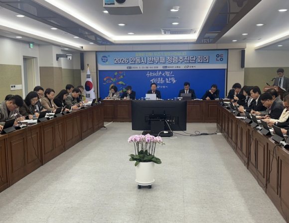 안동시는 3월 23일 안동시청 웅부관 소통실에서 권기창 안동시장을 비롯한 부시장, 국․소장 등 간부공무원이 참석한 가운데 ‘2026년 반부패․청렴 추진단 회의’를 개최하고, 종합청렴도 향상을 위한 추진체계와 반부패․청렴 종합계획을 공유했다.