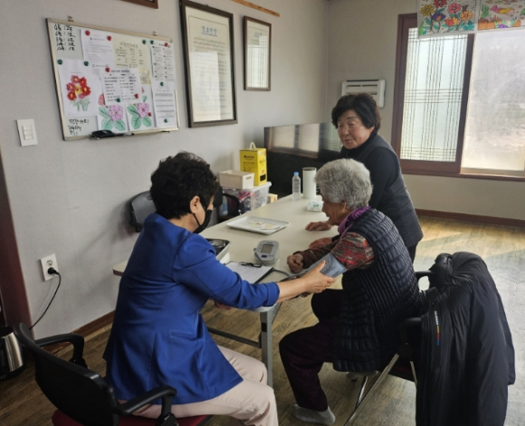 | ↑↑ 포항시 남구보건소는 24일 장기면 금곡리 경로당에서 지역 어르신과 주민들을 대상으로 의료나눔 봉사활동을 펼쳤다. |
