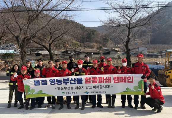 영주시는 소백산국립공원사무소와 함께 봄철 산불조심기간(1월 24일~5월 15일)을 맞아 산림 인접 농가를 대상으로 영농부산물 합동 파쇄 작업을 실시하며 산불 예방에 나서고 있다.