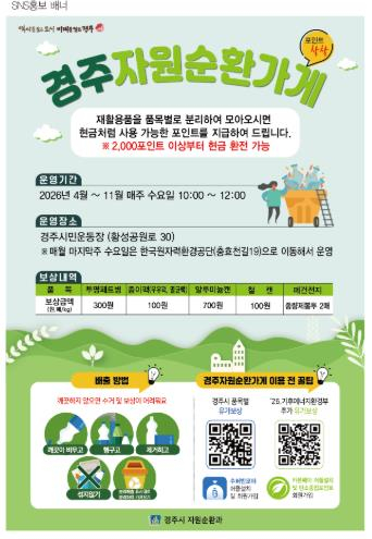경주시는 재활용품 분리배출 활성화와 자원순환 문화 확산을 위해 ‘자원순환가게’를 운영한다고 26일 밝혔다.