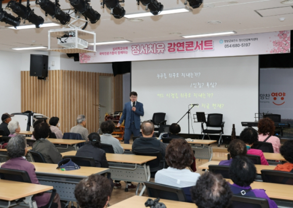 영양군보건소 정신건강복지센터는 3월 26일 석보면 장계향문화체험교육원 강당에서 지역주민 80여 명이 참석한 가운데 ‘정서치유 강연 콘서트’를 개최했다.