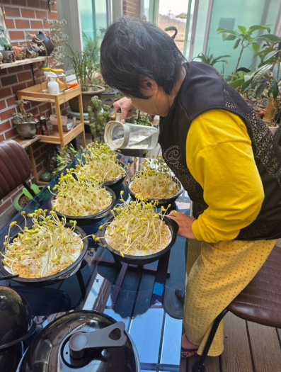 어르신들은 직접 콩나물을 재배하며 성장 과정을 관찰하고, 일상 속 즐거움과 성취감을 느끼는 시간을 가졌다.