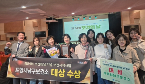 포항시 남구보건소는 제54회 보건의 날 기념 ‘보건시책사업 우수기관 평가’에서 대상을 수상했다.