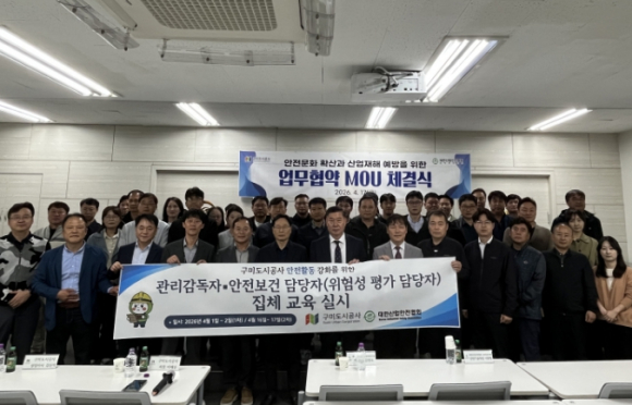 구미도시공사는 대한산업안전협회와 산업현장 안전문화 확산 및 근로자 산업재해 예방을 위한 업무협약(MOU)을 체결하고, 안전 중심의 경영체계 구축을 위한 협력에 나섰다.