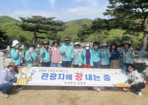 4월 20일, 성주군 관광과 직원들은 ‘우리동네 새단장’ 활동의 일환으로 관광 명소인 생명문화공원을 찾아 대대적인 환경정화 봉사활동을 실시했다. 특히 이날 활동에는 지난달에 이어 지역 문화유산을 가꾸는 데 뜻을 같이한 문화관광해설사들이 기쁜 마음으로 동참하며 그 의미를 더했다.