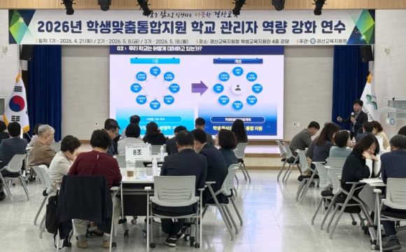 경상북도경산교육지원청은 4월 21일 교육지원청 학생교육지원관 4층 강당에서 관내 초․중․고․특수․각종학교 교장을 대상으로 ‘2026년 학생맞춤통합지원 학교 관리자 역량 강화 연수’를 개최했다.