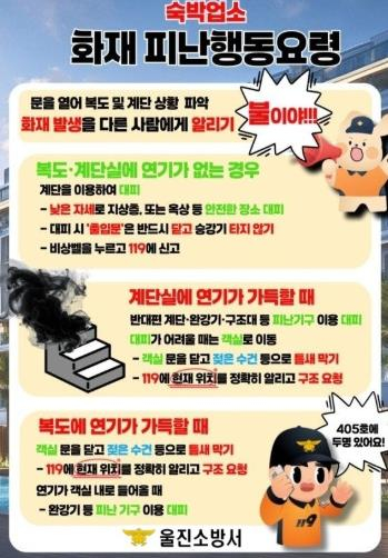 울진소방서는 봄철을 맞아 숙박시설 화재예방 안전수칙을 집중 홍보한다고 22일 밝혔다.