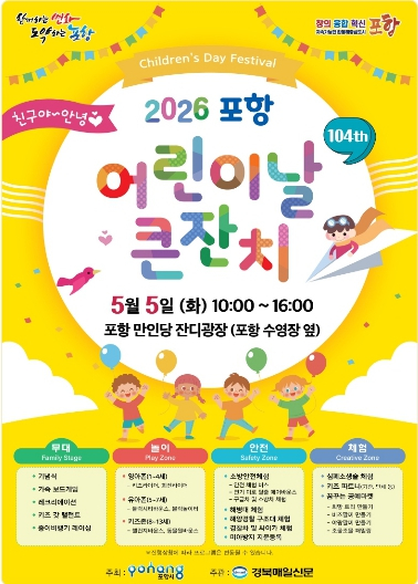 포항시는 제104회 어린이날을 맞아 내달 5일 남구 만인당 잔디광장에서 ‘2026 포항 어린이날 큰 잔치’를 개최한다.