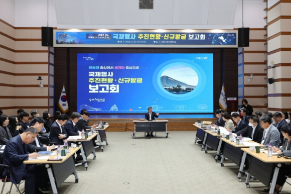 시는 29일 시청 대회의실에서 장상길 포항시장 권한대행 주재로 관련 국장 및 부서장들이 참석한 가운데 ‘국제행사 발굴보고회’를 개최하고, 부서별 유치 전략을 집중 점검했다.