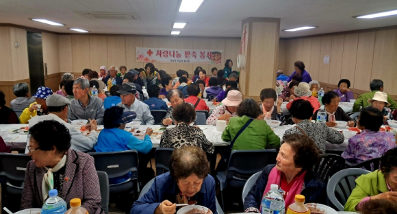 군위군 우보면 적십자봉사회는 지난 24일 삼국유사 청춘대학 수업 종료 후 어르신 150여명을 모시고 우보면 종합복지관에서 정성을 듬뿍 담은‘사랑의 팥죽 나눔’봉사를 했다고 밝혔다.